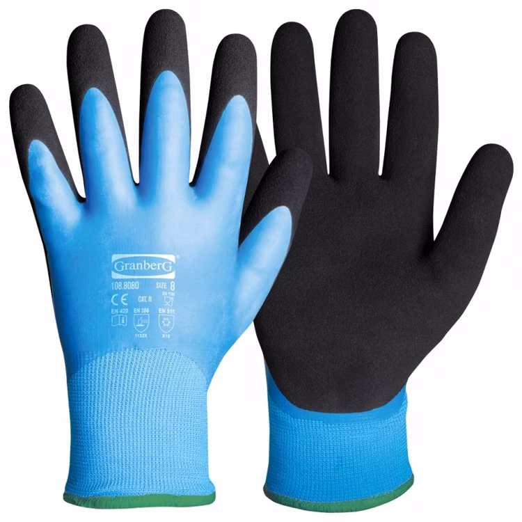• Beläggningen av vattentät latex gör dem särskilt lämpliga till vått arbete och arbete i våta miljöer.